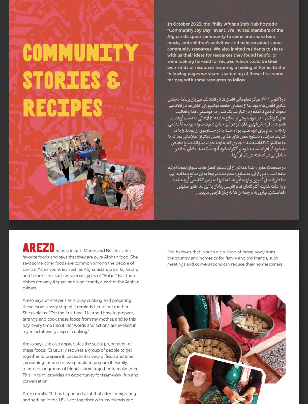 On January 28, 2024, the Philly-Afghan Info Hub hosted a Community Joy Day with Afghan residents of Philadelphia to celebrate the release of its Resource & Recipes Guidebook.