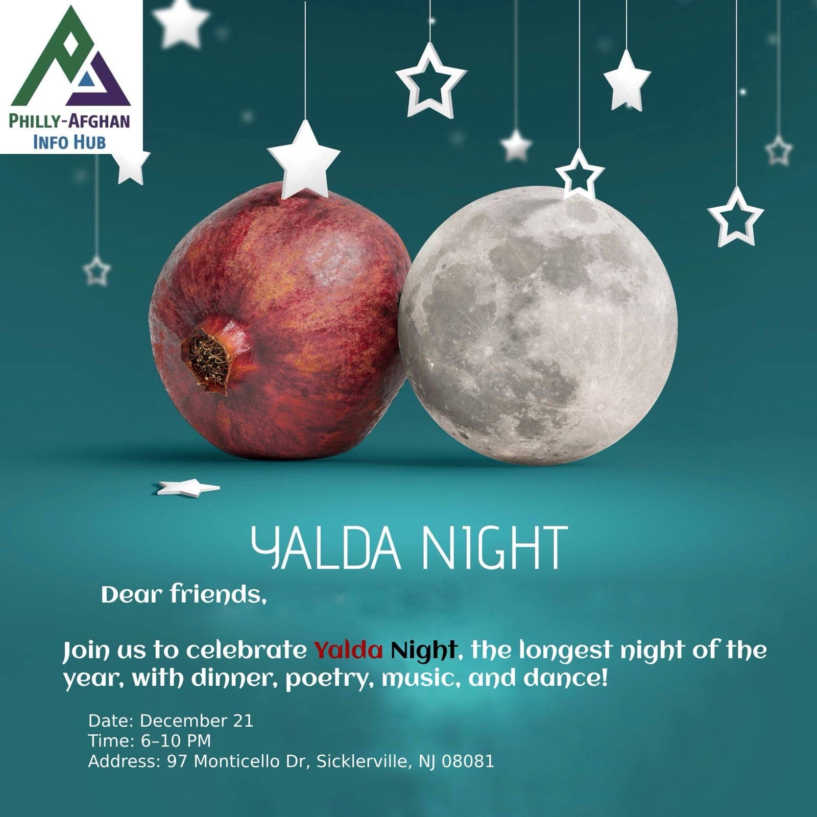 On December 21, 2024, the Philly-Afghan Info Hub hosted another Community Joy Day, celebrating Yalda Night, the holiday season, and the close of the year. It was a beautiful evening of poetry, culture, music, and dance, where we also reflected on all we accomplished in 2024 and shared our upcoming plans for 2025.